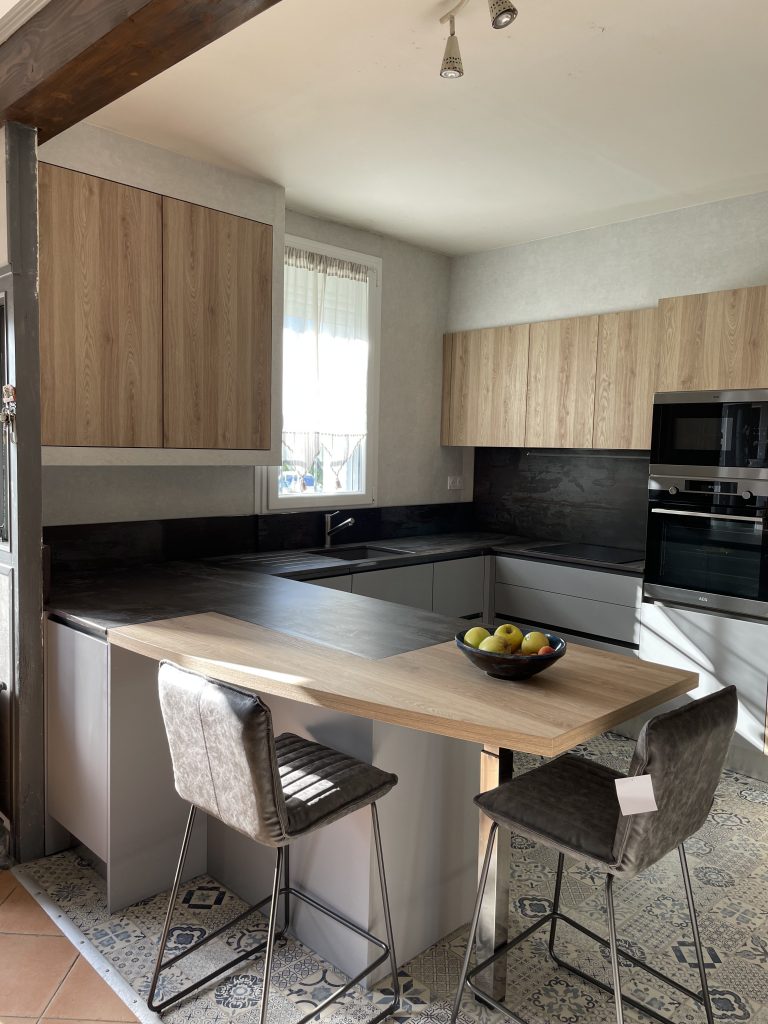 Le choix des matériaux, notamment le bois et les finitions modernes, permet de créer une cuisine moderne qui s’intègre parfaitement à la maison. Les finitions ont été particulièrement soignées pour garantir une grande qualité et un résultat à la hauteur des attentes du client.