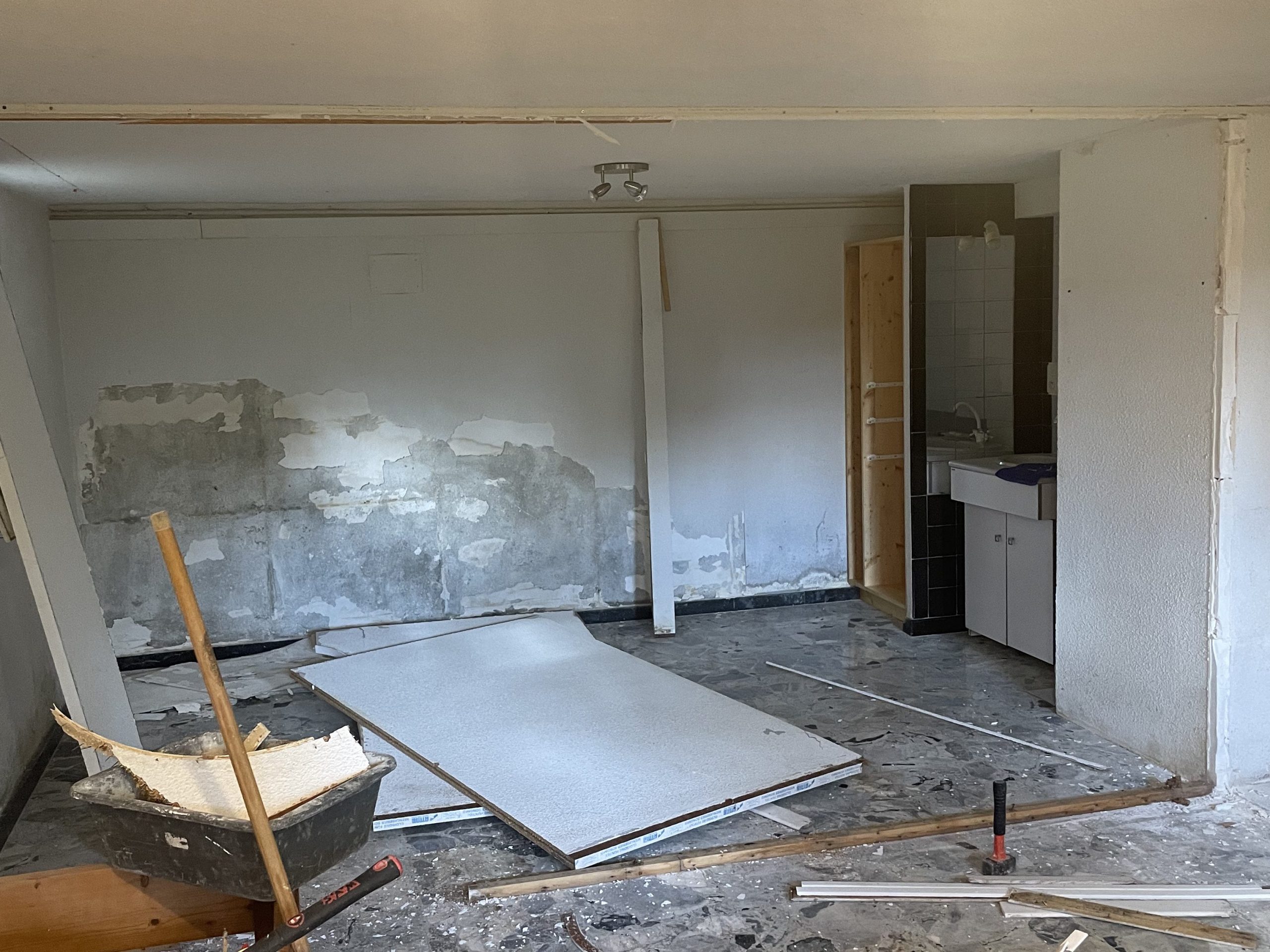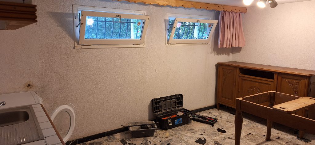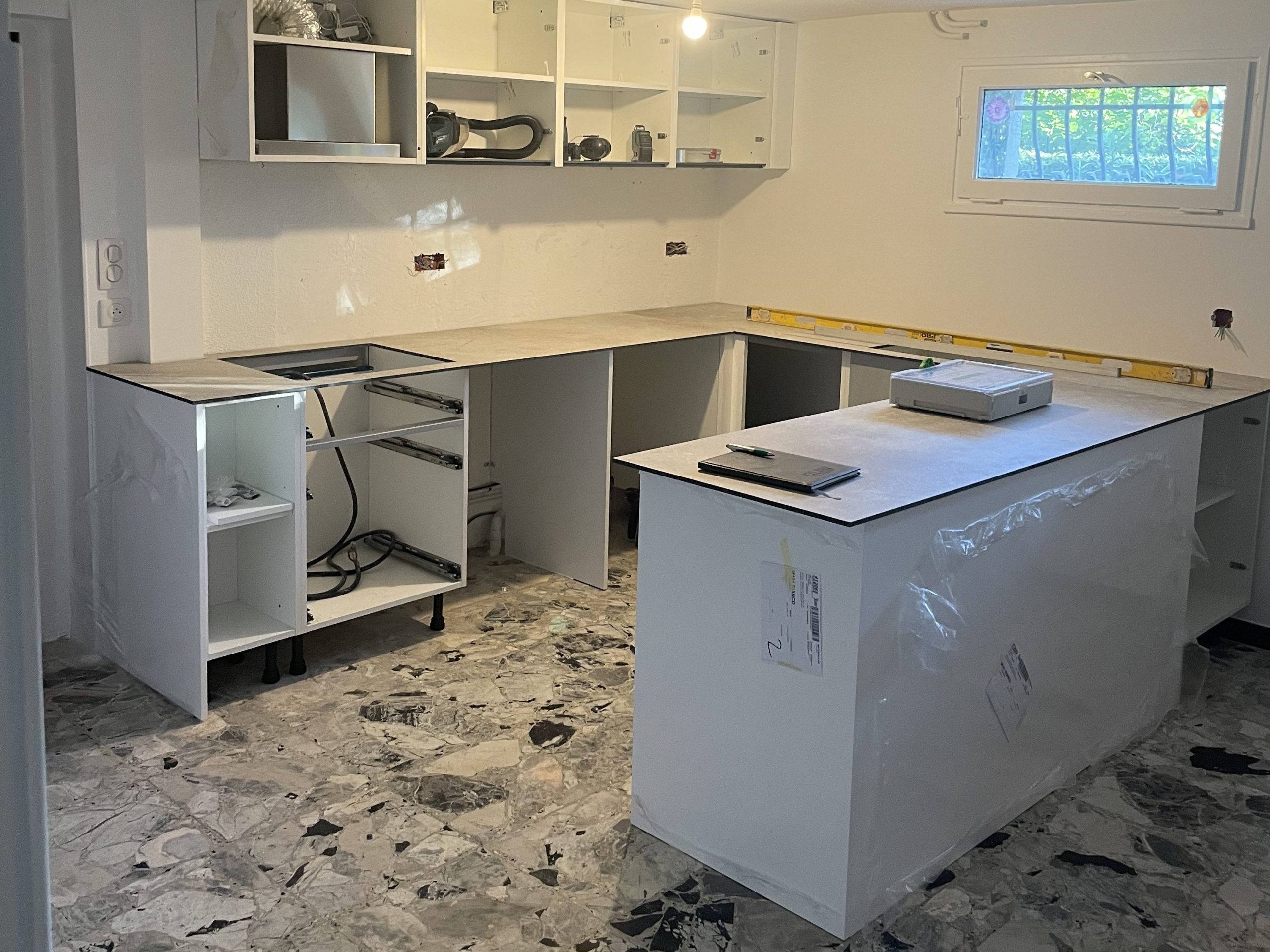 🔧 Travaux réalisés : Électricité, plomberie, cloison, VMC, peinture, pose de cuisine sur mesure