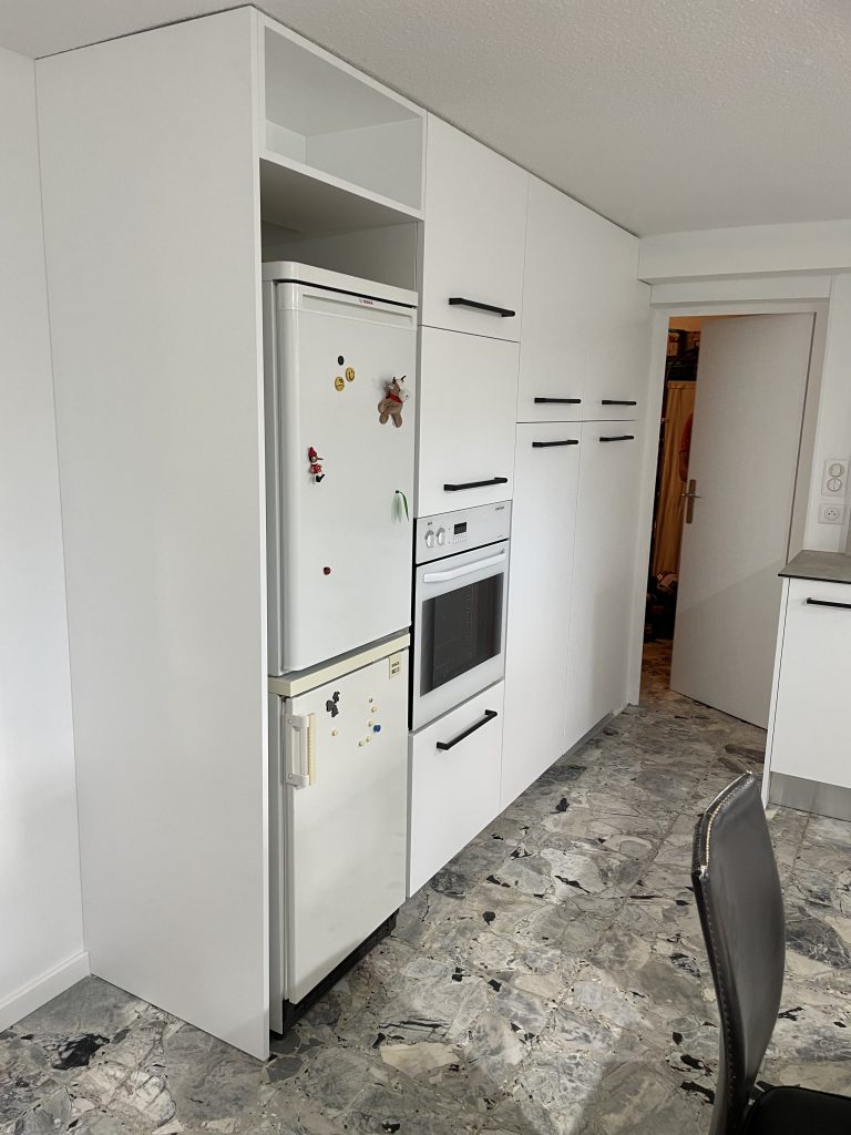 La pose de colonnes de 204 cm sous 211 cm de plafond a nécessité un travail de précision millimétrée, démontrant tout le savoir-faire artisanal de nos équipes. Chaque meuble a été ajusté sur mesure pour garantir un rendu parfait et une harmonie complète avec la pièce de vie.